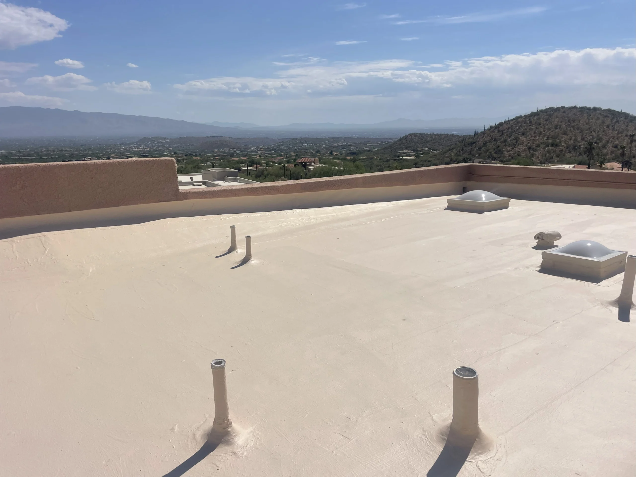 Silicone coatings excel in ponding water areas where other systems degrade. Superior water resistance makes silicone ideal for low-slope commercial roofs with drainage challenges. These coatings remain flexible across extreme temperature ranges, important for Tucson’s day-night temperature swings.